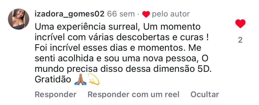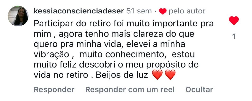 Com uma abordagem amorosa e ao mesmo tempo estruturada, ela cria um ambiente seguro para que cada participante mergulhe em sua jornada de autoconhecimento e saia do retiro com uma nova energia para viver em 5D.